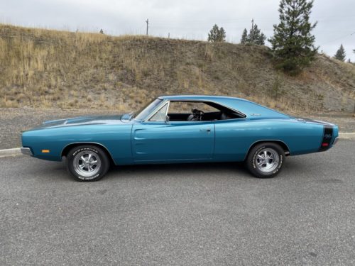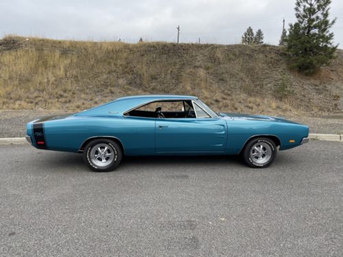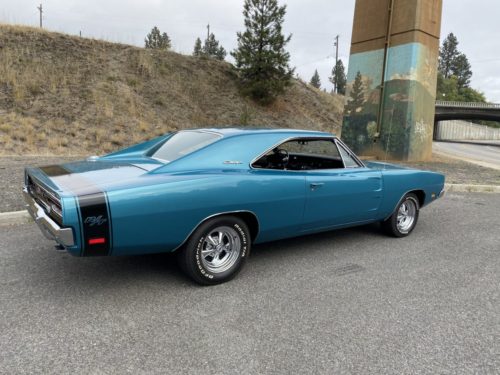 1969 Dodge Charger R/T, matching numbers 440 Magnum, 4 barrel, original A727 automatic transmission, 3:23 gears, original drive line, AM radio, 90,123 miles, only 2,713 miles since restoration, beautiful turquoise Q5 with black interior restored from original, Cragar wheels with BF Goodrich currently on but have original rally wheels, have build sheet and manuals, car drives really really nice, beautiful restoration!